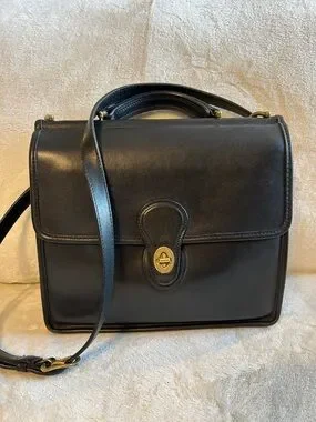 Coach vintage Willis Black Leather Crossbody Bag Gold Turn-Lock made in Italy