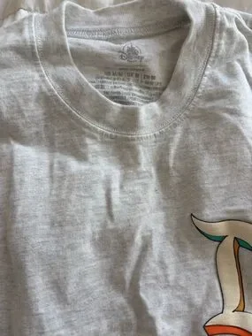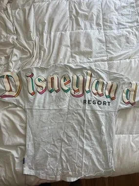 Light gray long sleeve tee with colorful stylized 'D' logos on chest and sleeves. Playful multicolor accents add a vibrant touch. Cozy casual piece for everyday wear.