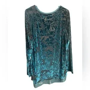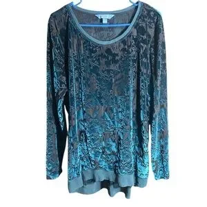 Simply Vera Vera Wang Teal Sheer & Velvet Long Sleeve Top