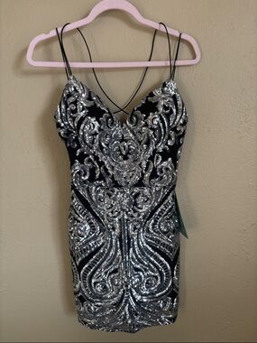 🪩 B. smart Black & Silver Sequins Strappy Party mini Dress