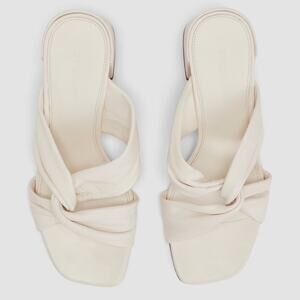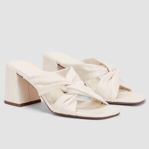 Keywords: Everlane heels, white leather sandals, block heel mules, bridal shoes, knot detail heels, summer dress sandals, chic minimalist heels, versatile wardrobe staple