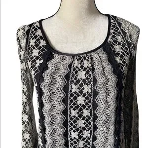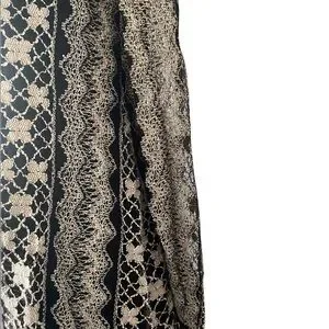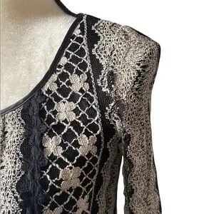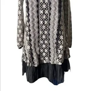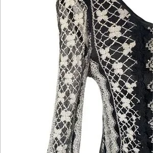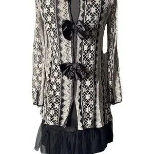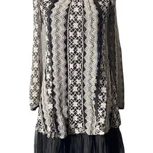ALTERD STATE, stunning dress, black dress with a cream colored lace overlay, Mesh ruffle hem, black bows down the back, lace sleeves that button at the wrist, excellent condition, size small