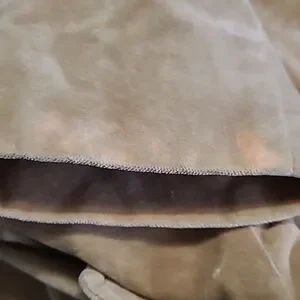 Very good pre-owned condition. See pictures for reference - see small spot im pointing to in the picture. Also has discoloration at one cuff as shown. Measurements taken while laying flat & are approximate.