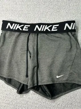Nike Dri Fit Women's Grey Active Shorts with Foldable Logo Waistband Sz S