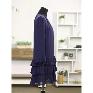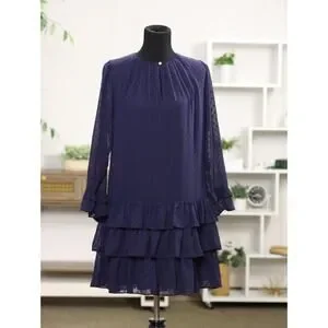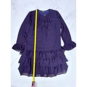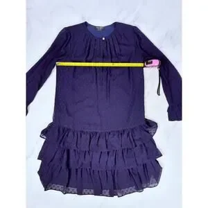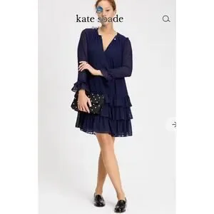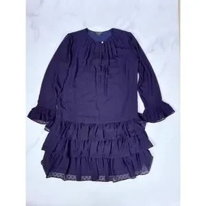 Kate Spade Breezy Dot Flounce Dress Navy Tiered Swiss Dot Ruffle Mini Small