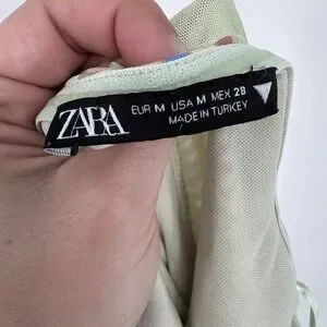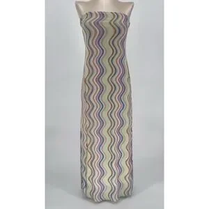 Zara Wavy Print Strapless Tulle Midi Dress Mesh Bodycon Psychedelic Retro M