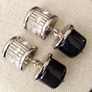 Vintage chunky silver and dark gray clip on earrings with cz accents