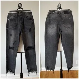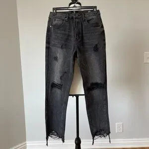Insane Gene new with tags high waist girlfriend jeans size 24 fray black denim
