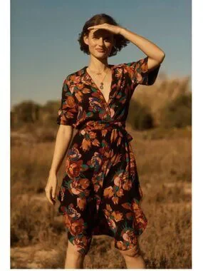 Floral-printed shirtdress that combines the structured polish of a classic button-down with whimsical details.