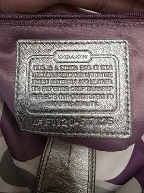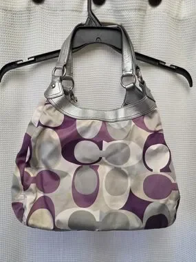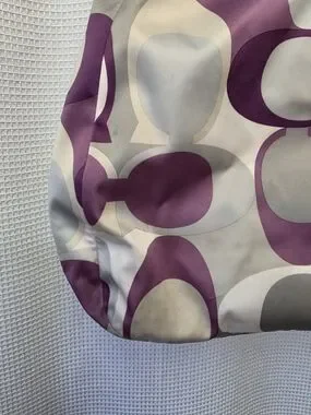 Coach Purple Signature Pattern Shoulder Bag with Silver Trim USED