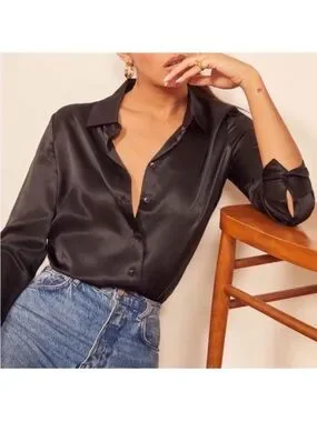 An elevated everyday option, this Reformation button-down shirt is crafted from pure black silk. Team it up with jeans from the label's collection to complete your outfit.