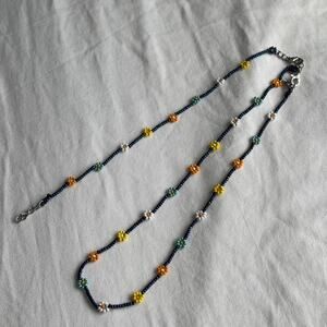 Handmade beaded necklace and bracelet with colorful flowers