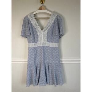 Gianni Bini Alice Lace Light Blue V Neck Eyelet Drop Waist Dress, Womens Size 12
