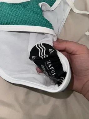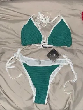 Zaful Green Bikini with White Trim - Tie Side - Women Swim Two-Piece - Size M