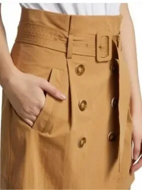 Veronica Beard Melany Mixed Media White and Tan High-Waist Belted Mini Dress