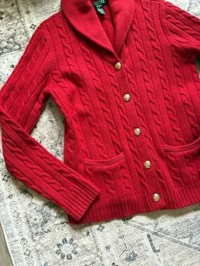 Vintage Ralph Lauren red cable knit wool rabbit hair cardigan size M