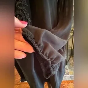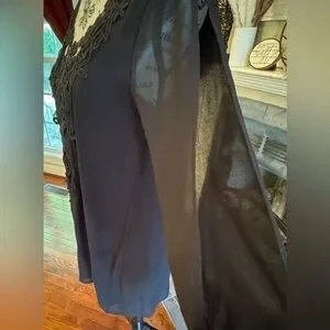 Little Black Dress Long Sheer Sleeves Open Arms Embroidered Front Women’s Large