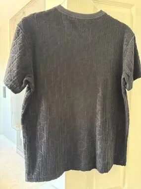 Premium Dior crewneck with subtle textured knit. Short sleeves and ribbed neckline. Elegant everyday black tee.