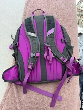 North Face Recon Backpack in grey and purple. Great condition!