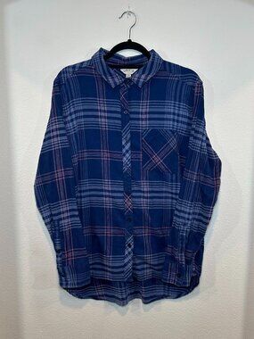 Orvis Shirt Women's Blue Plaid Long Sleeve Button Up Shirt in Size Extra Large
