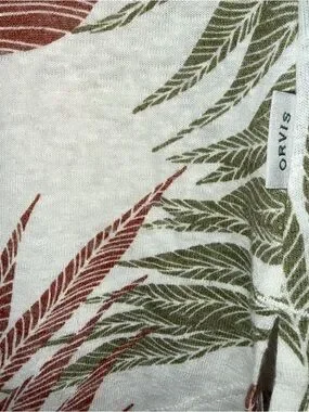 Orvis Short-Sleeve Linen Blend Scoop Neck Top with Leaf Print