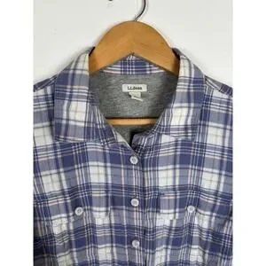 LL Bean Women's Sz Small Plaid Lined Shirt Shacket Periwinkle Purple Flannel