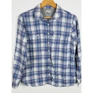 Excellent condition. The product is a periwinkle purple flannel shirt designed for women in size small. It features a plaid lining, long sleeves with a collared neckline, button closure, and is suitable for casual or workwear occasions. Made from 100% cotton flannel, this easy-care shirt also includes accents like a quilted style and pockets, making it a stylish and practical option for the winter season.