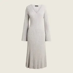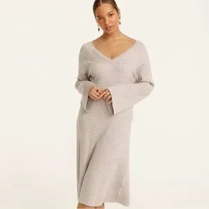 đź©¶ J.Crew Ribbed Sweater Dress | V-Neck, Bell Sleeve, Soft Sustainable Knit