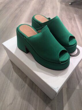 GANNI | Retro Satin Platform Wedge Mule In Kelly Green EU37
