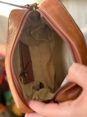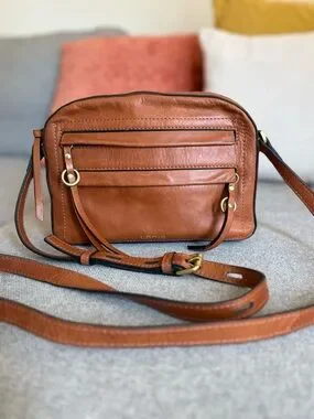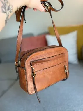 Lodis Cognac Brown Leather Crossbody Bag Adjustable Strap Vintage Texas Purse