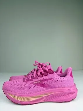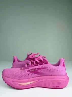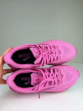 running shoes, athletic sneakers, gym, walking shoes, cushioned, neutral running, brooks ghost, athleisure, workout, bright pink sneakers