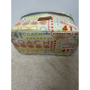 Y2K COACH MULTICOLOR RAINBOW LAMINATED BANDANA BLUE TOP HANDLE POUCH BAG PURSE