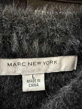 Andrew Marc Black & Cream Striped Fuzzy Crewneck Sweater