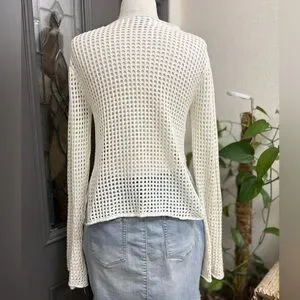 Wild Moss Cream Crochet Granny Square Flared Long Sleeve Fringe Top. | Size XL