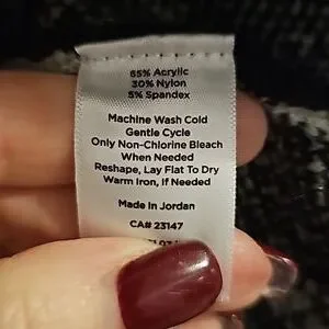 Material: 65% Acrylic, 30% Nylon, 5% Spandex