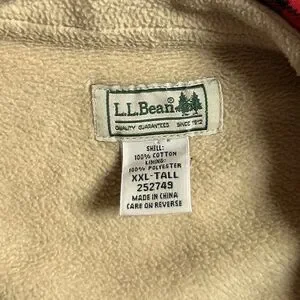LL Bean Fleece Lined Flannel Shirt Jacket Mens XXL Tall Red Plaid Sherpa