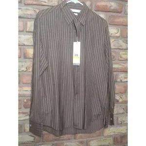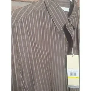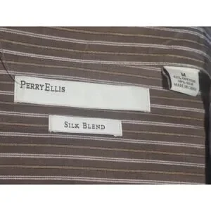 Perry Ellis Shirt Mens M Brown Striped Silk Blend Hidden Button Dress NWT