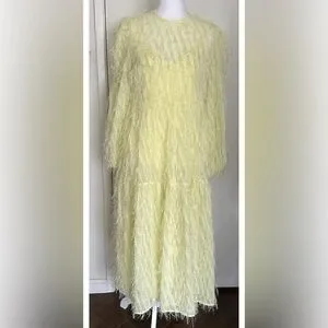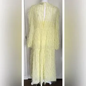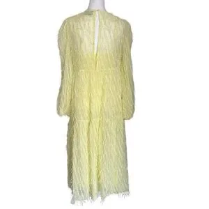 Asos Design Women’s Tiered Midi Dress Fluffy Texture Pale Yellow Size 6 Lined