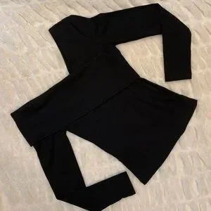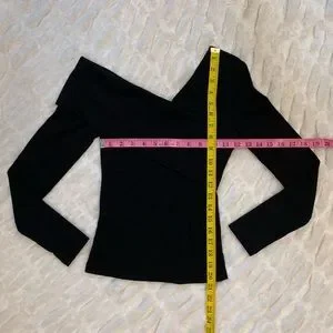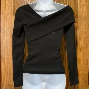Black Asymmetrical Long Sleeve Stretch Knit Top XS