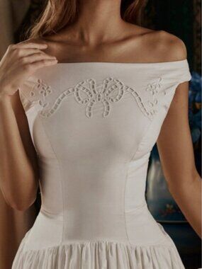 House of CB • Lauren Off-Shoulder White Midi Dress with Eyelet Hem