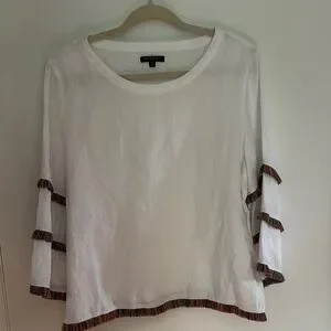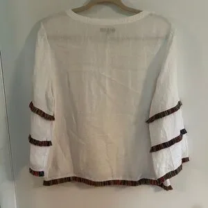 For Cynthia Linen Top Women’s Petite Large White Fringe Coastal Cottagecore