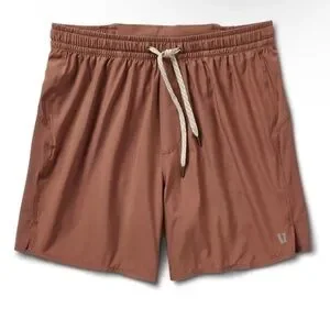 Vuori Men’s Course Run Shorts in Terracotta Dusty Red Drawstring