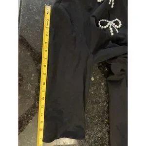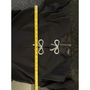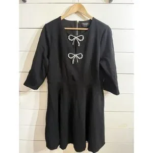 The Kate Spade A-line Dress is a stylish and sophisticated option for a party or cocktail occasion. This dress features mini bows and pearls, adding a touch of elegance to the classic black color. Made with stretch material for a comfortable fit, this dress is designed in size XL with a flattering A-line silhouette. The half-sleeve and round neckline make it easy to wear for events in the summer and spring seasons. With its brand name and quality construction, this dress is a perfect choice for any fashion-forward woman.