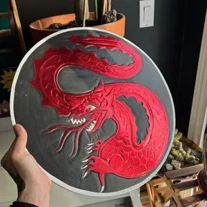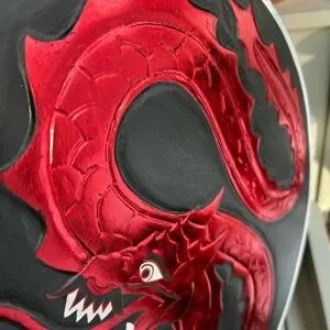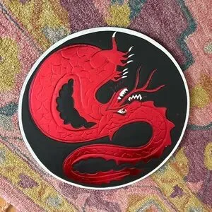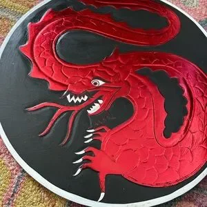 Striking dragon design. Bold red and black colors. Perfect for adding a fierce touch to any room.
