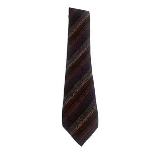 Elevate your style with this elegant striped tie. Featuring a blend of black, brown, and purple hues, it's perfect for any formal occasion.