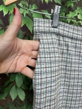 SEO: plaid ankle pants, cropped trousers size 6, high rise pants, elastic waist trousers, dark academia style pants, workwear pants women, tailored casual pants, fury full on pants