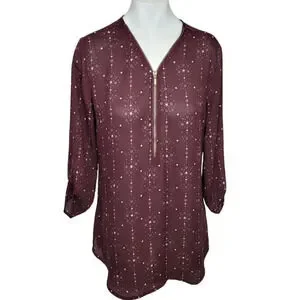 Maurices Zip Front Roll Sleeve Top