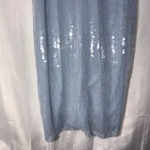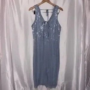 Crystal Doll Light Blue Sequin Mesh V-Neck Tie Back Cocktail Dress XL NWOT