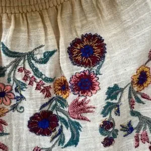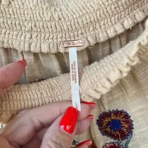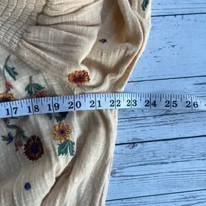Free People Embroidered Peasant Cottagecore Hippie Cream Floral Boho Top Large