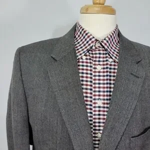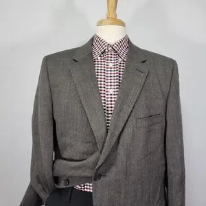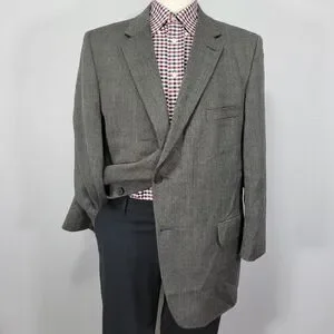 Joseph Feiss Men's Sport Coat Blazer Two Button Gray Herringbone Lambs Wool 46R